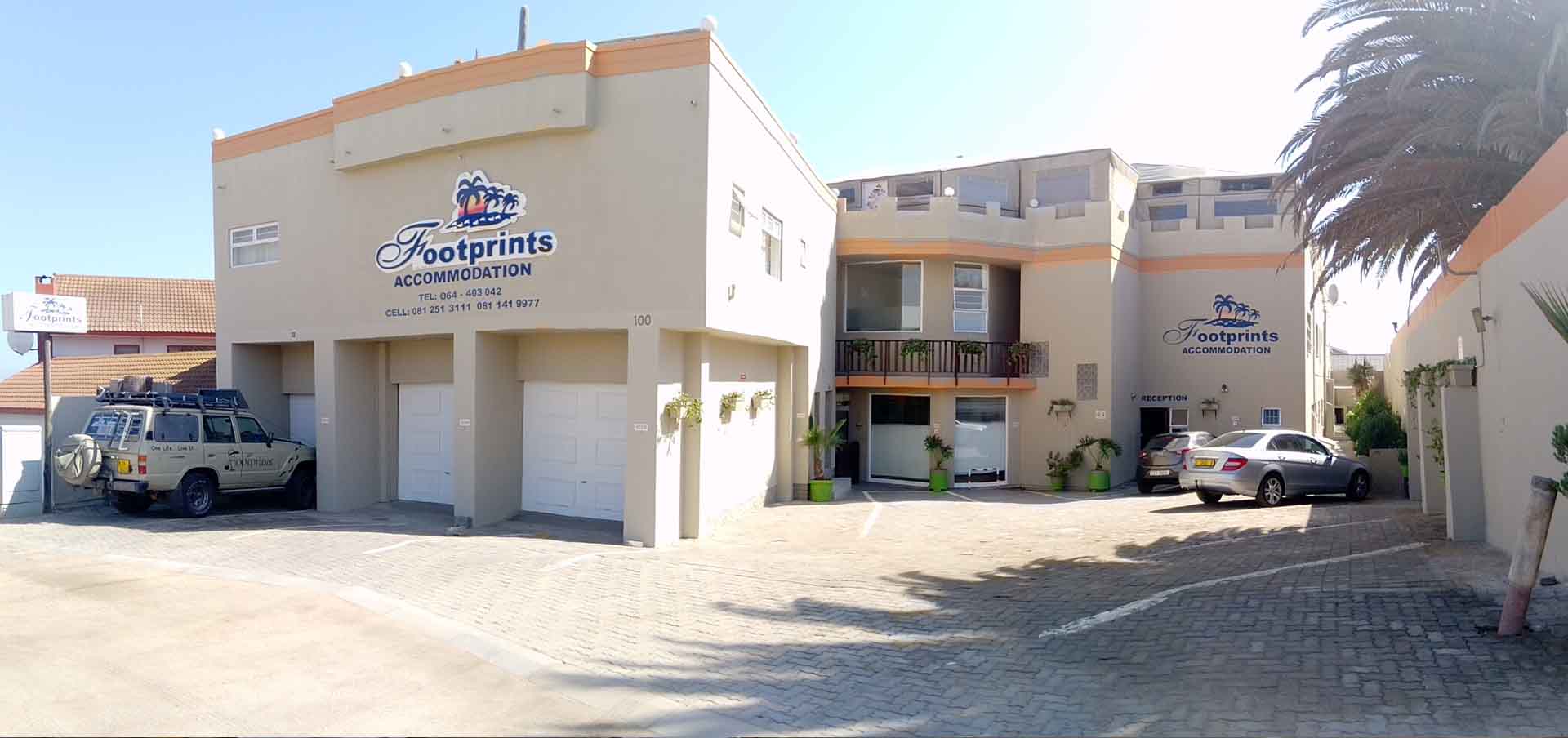 FOOTPRINTS is 5 minutes drive and 15 minutes walk to the Waterfront Platz A Meer Mall where you can relax and enjoy your shopping and strolls on the beach in the cool ambient Swakopmund weather. We are 10 minutes drive to town.